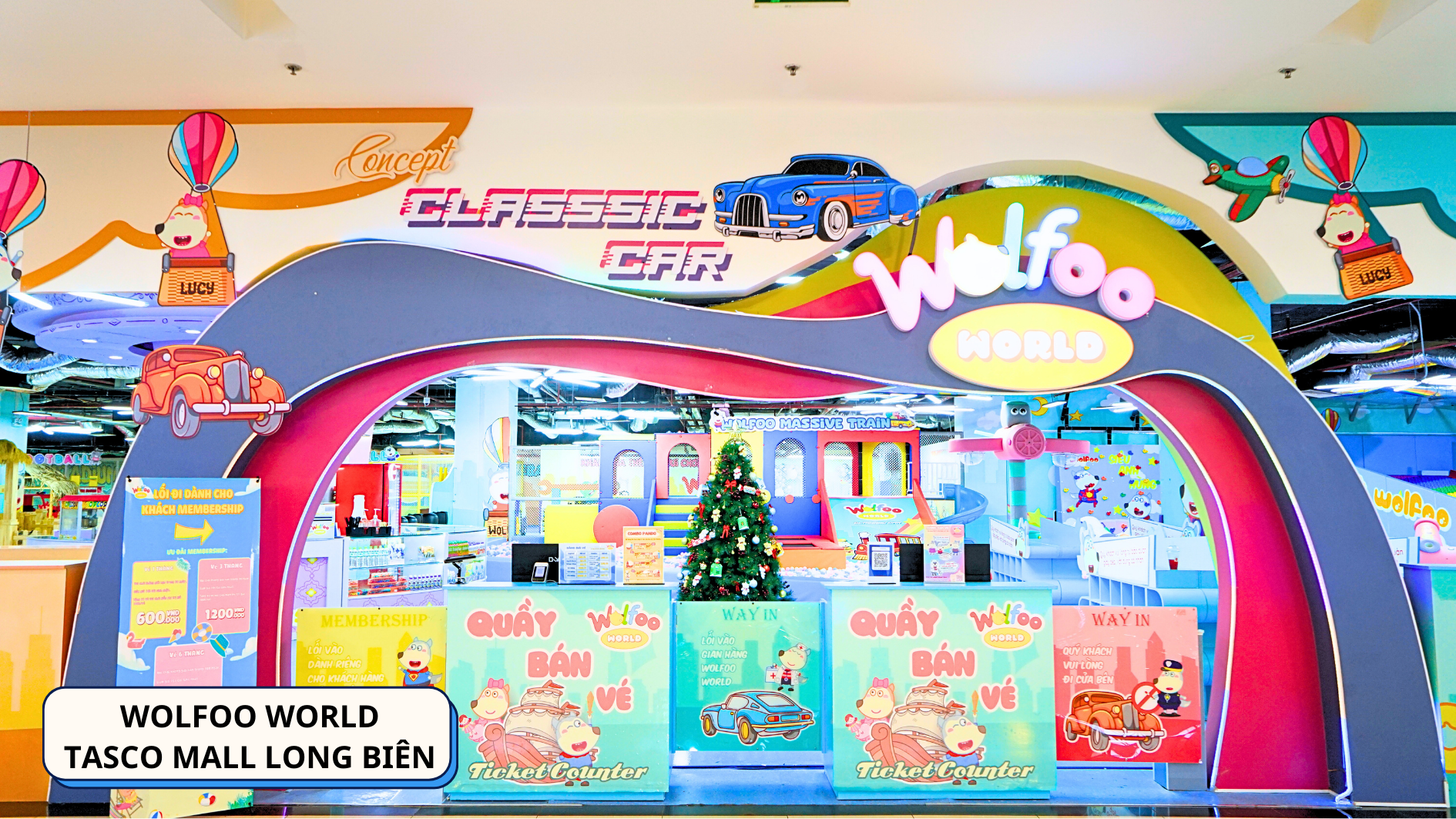 Wolfoo World Tasco Mall Long Biên – căn cứ vui chơi siêu to khổng lồ với diện tích rộng rãi 1700m². Khu vui chơi được chia làm 3 phân khu vận động – hướng nghiệp – sáng tạo, thiết kế theo concept Classic Car độc đáo với vô số trò chơi thú vị.